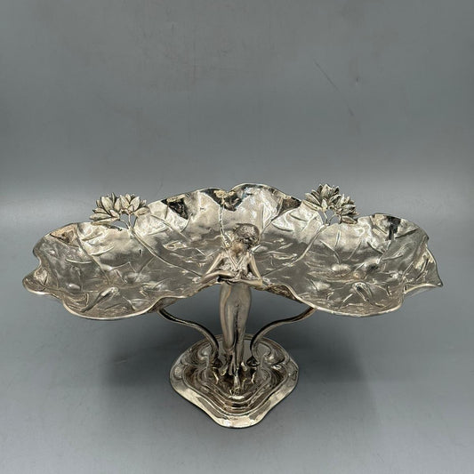 ART NOUVEAU 900 QARAT STERLING SILVER CENTERPIECE – VINTAGE DECORATIVE BOWL WITH LADY AND FLORAL DESIGN