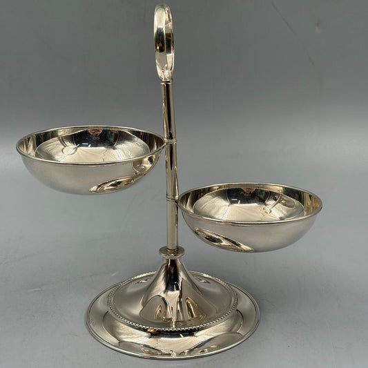 TWO-TIER 900 QARAT STERLING SILVER SERVING DISH – SNACK & CANDY BOWL WITH HANDLE