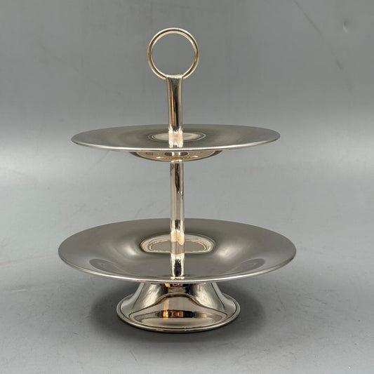POLISHED 900 QARAT STERLING SILVER 2-TIER ROUND SERVING STAND – DESSERT, CUPCAKE & PASTRY DISPLAY
