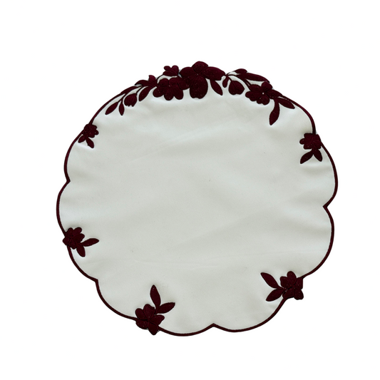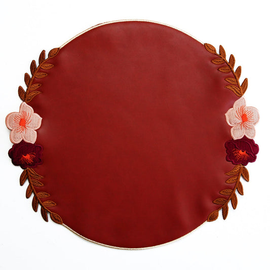 LOTUS WHITE BURGUNDY ROUND FAUX LEATHER PLACEMAT