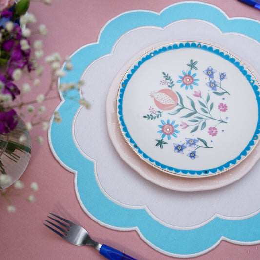 SERENITY WHITE BLUE SCALLOPED FABRIC PLACEMAT