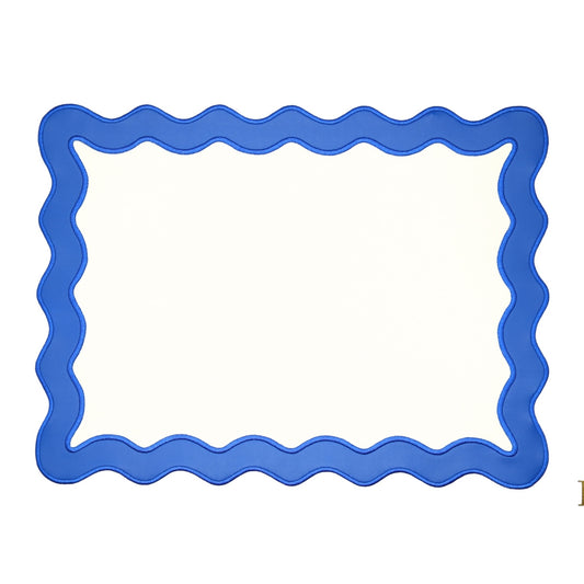 SERENITY WHITE YELLOW SCALLOPED FAUX LEATHER PLACEMAT