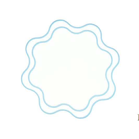 HAVEN WHITE WAVY EDGE BLUE TRIM FAUX LEATHER PLACEMAT
