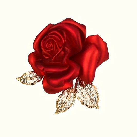 CRIMSON RHINESTONE ROSE BRIDAL BROOCH