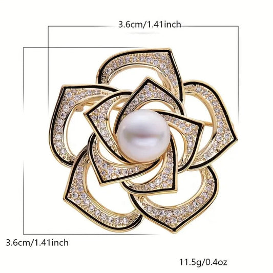 ETERNAL PEARL RHINESTONE ROSETTE CRYSTAL BROOCH