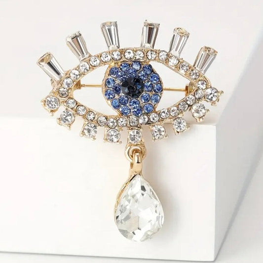GOLDEN GUARDIAN RHINESTONE EVIL EYE CRYSTAL BROOCH