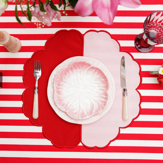 DUALITY PINK RED SCALLOPED FABRIC PLACEMAT