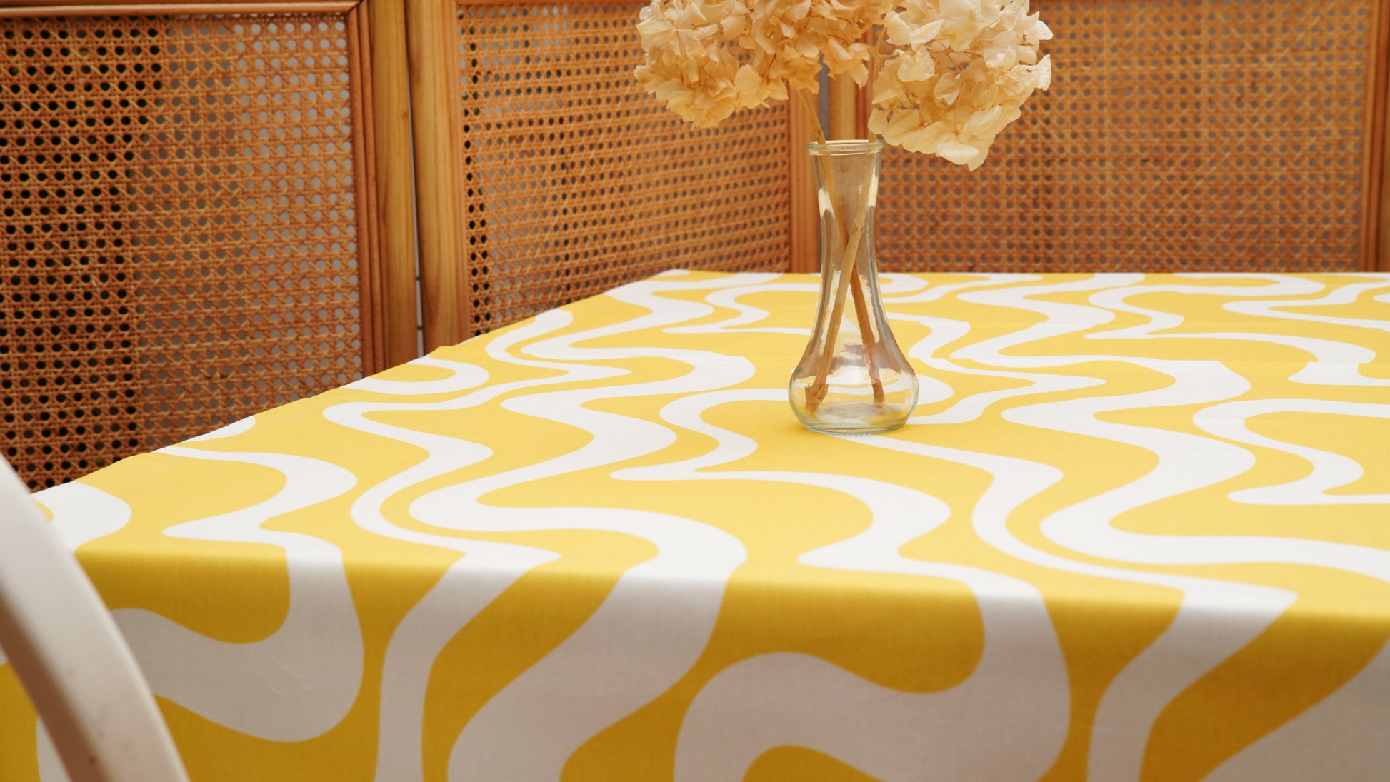 KIVO YELLOW & WHITE RECTANGLE TABLECLOTH